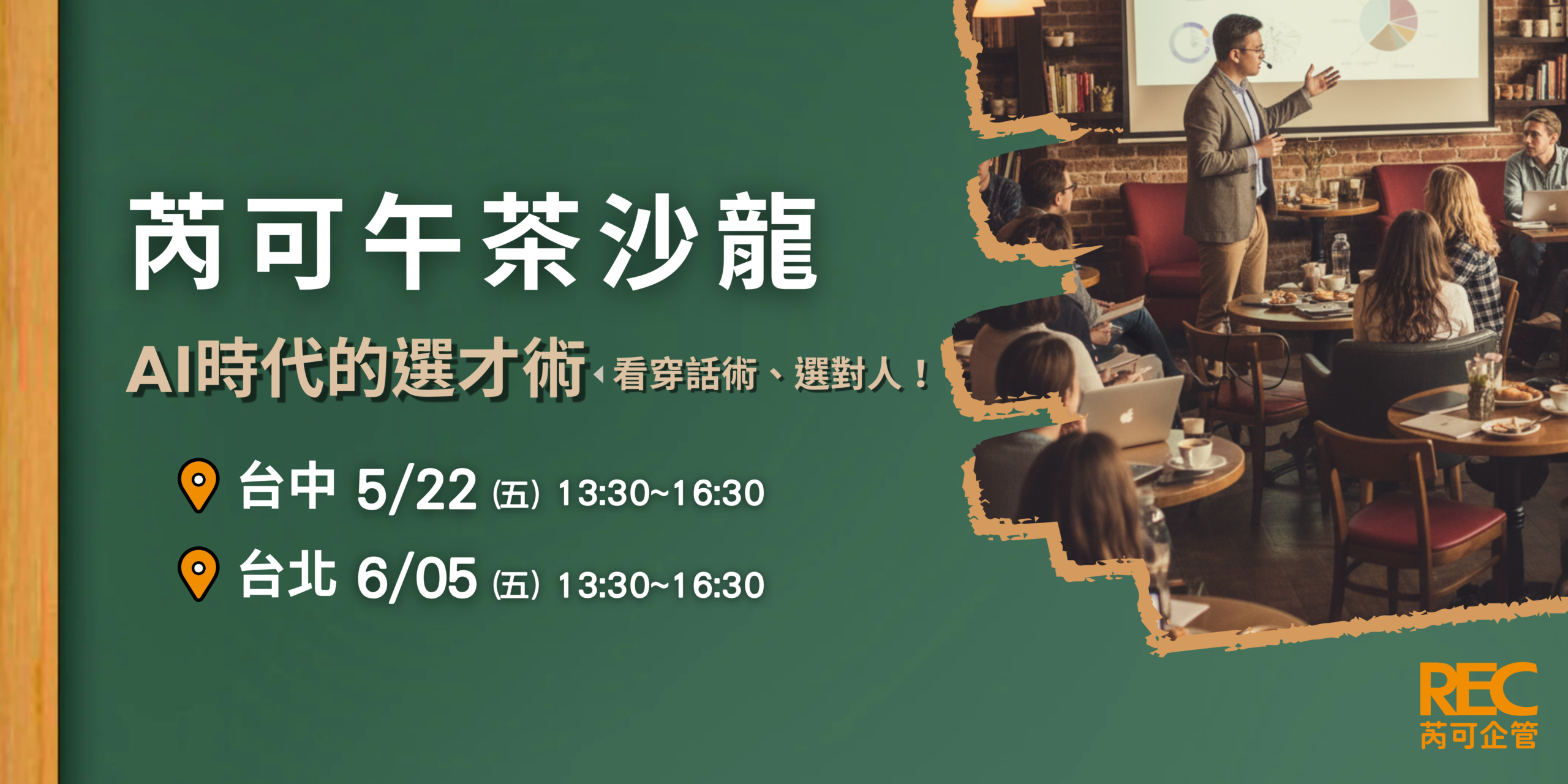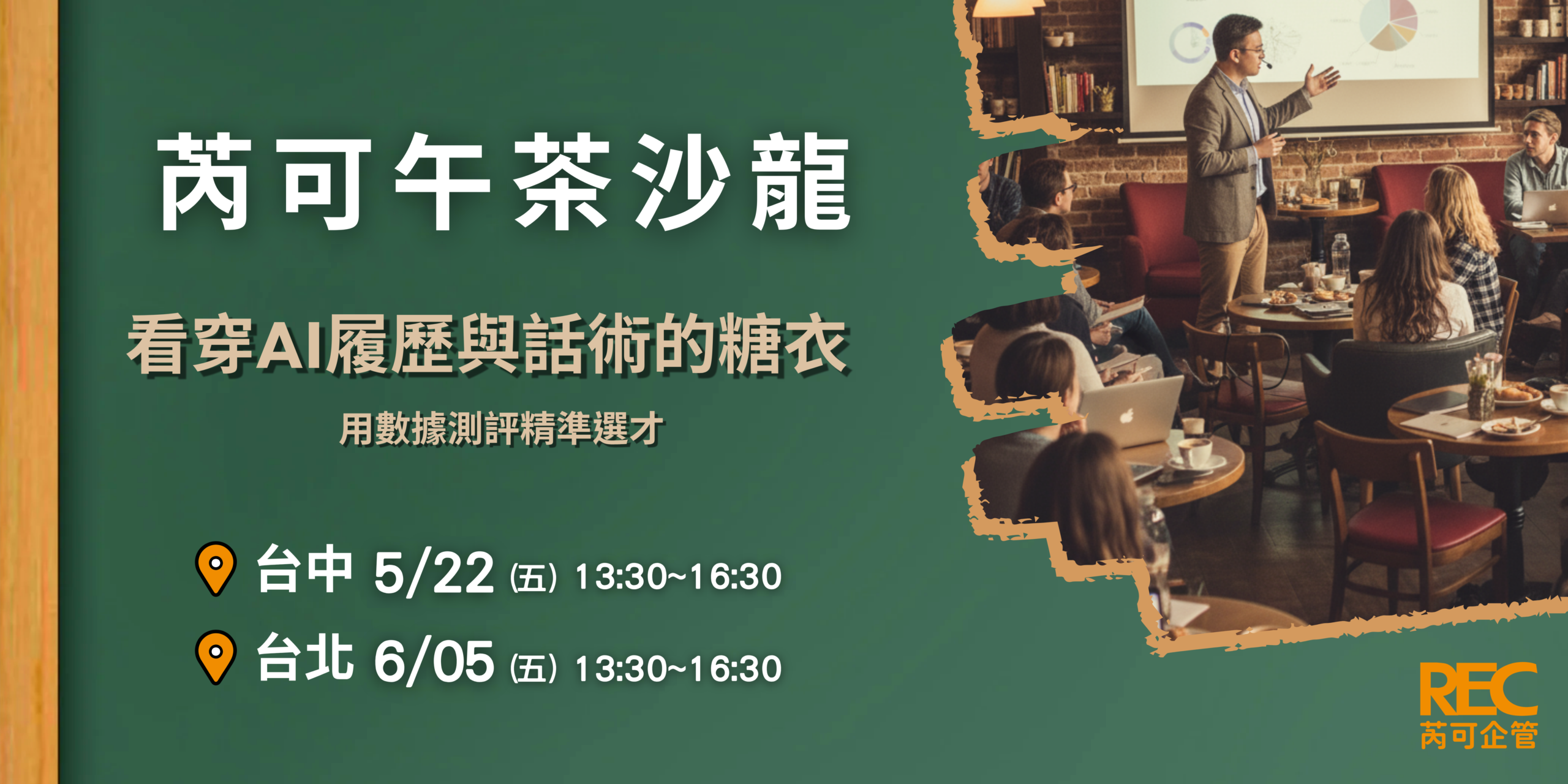 領導不是你是誰 而是你「演的像不像」領導 芮可企管 × 唐從聖:專為高階主管打造的影響力戰略系統 探索劇場領導學 專業 × 高效攜手打造具備競爭力的人才戰力 洞察組織痛點,HR的戰略好夥伴,芮可陪伴企業打造高效的人資價值鏈 聯絡我們 Solution 三大核心服務|協助企業策略落地 提供HR全方位的解決方案,幫助企業在人力資源管理上更靈活、更高效 芮可測評雲 讓企業「快速、輕鬆、精準」建立人才數據 人才評鑑與發展 企業的人才培訓與組織發展諮詢服務 混合型人力服務 提供企業具彈性與效率的人力策略 獨家課程 【劇場領導學】由唐從聖老師親自授課,融合三十年舞台底蘊與情境領導實務,協助主管建立氣場,驅動團隊共鳴 關於REC 提供企業各式人力資源相關服務,包括人才的委外、訓練、評鑑、及發展等各階段專業之管理顧問服務 Staff acquisition 芮可職缺訊息 以專業的招募流程、精準的人才媒合能力與對職場趨勢的敏銳洞察,協助企業快速找到合適人才,也為求職者打造多元、穩定且具成長性的職涯選擇 正職職缺 馬上求職 兼職職缺 馬上求職 Advantages 我們的優勢 無可替代的HR專業服務 提供完整、階段性的人力資源顧問服務 提供混和性人力與人才評鑑發展服務,同步補強企業人才「量」與「質」,並依需求彈性客製,實現專業、效率與成本三效整合 亞洲全客製化評鑑中心專家 由心理、統計、人資背景顧問團隊,共同打造符合國際標準與本土需求的評鑑體系,能精準預估未來職場行為與潛能,百分之百客製化評鑑中心的顧問公司 專業顧問團隊,實戰經驗豐富 成員都是 HR 顧問領域的資深專業人員,擁有共同的理想與熱忱,專注於企業人力資源顧問相關的服務,以提升企業效益為志向 0 超過100+企業合作芮可企管已協助超過百家企業進行人才發展,涵蓋電子科技、製造、服務、食品飲料等,從新創到上市櫃皆為長期客戶。 0 200+專案經驗從核心職能培訓、行為評鑑到現場支援,皆以專案制完成高品質交付,廣受企業肯定。 0 培育超過1000+經理人透過職能建構與評鑑中心法的技術,芮可企管成功培育了超過千位經理人,強化企業的領導力與管理效能。 Lastest news 最新消息 2026-04-23 芮可午茶沙龍-AI時代的選才術:看穿話術、選對人才!台中/台北-同步報名! 2026-04-22 受保護的內容: 銷售主管培訓升級:從業績高手到團隊領導者,企業如何打造可複製的B2B銷售成長引擎? 2026-04-01 員工成長卡關怎麼辦?主管必學的員工指導與管理盲點 查看更多專欄